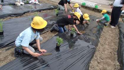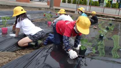 それから、畑に行き植えました。放課後にも、自分の野菜が気になって見に行く姿も見られました。