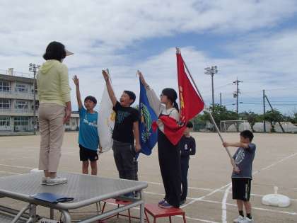 朝、教室に入ると、子供たちが集まって何やら話をしていました。何だろうと思っていると「先生、げんきタイムに応援練習をしたいのですが、体育館を使ってもいいですか?」と子供たち。自分たちで、練習する計画を立てていたのです。私は、先生の力を借りずに自分たちで考えている姿とやる気に満ちあふれている気持ちが嬉しくてたまりませんでした。その気持ちを感じとってか、1〜5年生さんもすごくがんばってくれています。応援合戦の様子を見ていると、子供たちの熱い思いが伝わってきて、どの団にも応援優勝をとってほしくなります。