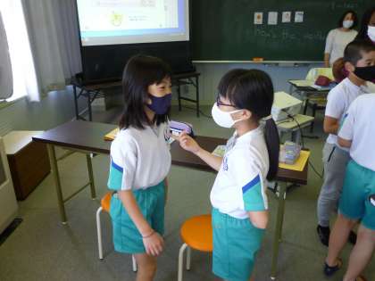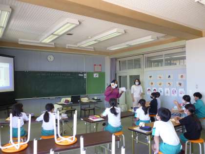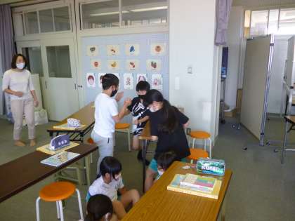 今日の外国語活動では、ALTのタメイカ先生と一緒に楽しそうに学習に取り組んでいました。