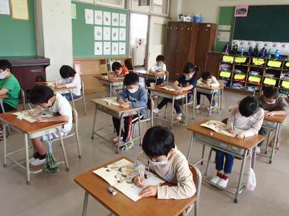 鉛筆の持ち方や姿勢に気を付けて、丁寧な字で、書写の学習に取り組みました。