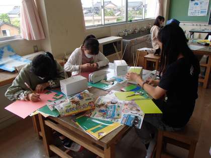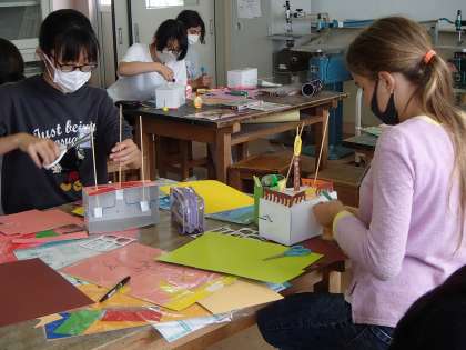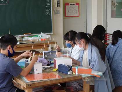 図画工作科では、「くるくるクランク」の学習に入りました。今日は、クランクの仕組みを作って、その動きから作りたい物を想像しました。「ロケットから星を見ている様子を作ろう」「遊園地にしよう」などと言いながら、黙々と作りはじめました。楽しい世界を想像し、楽しそうな子供たちでした。