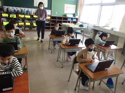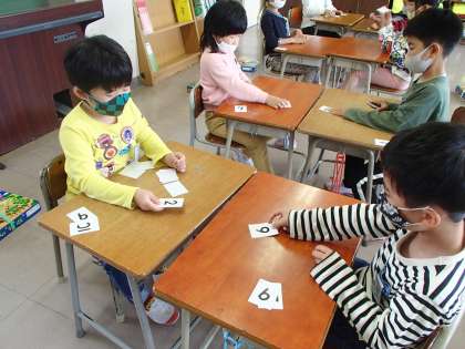 今日の算数は、クロムブックの使い方について学習しました。また、0から10までの数カードを使って「どちらの数が大きい」のカード対決をしました。