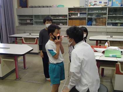 昨日、眼科検診を実施しました。昨年度と同様、感染症対策として自分で「あかんべー」をして目を診ていただきました。結果は今日または来週始めにお知らせします。
