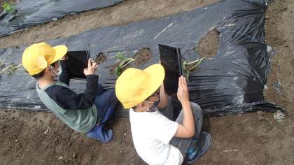 子供たちは、自分たちの野菜の成長を楽しみにしています。