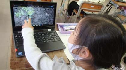 今日は、クロムブックを使って野菜の観察を行いました。子供たちは、画像を大きくしたり、違う画像に変えたりするなどクロムブックを上手に使っていました。