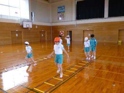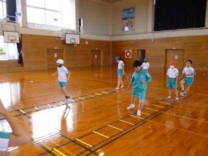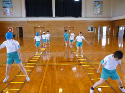 ラダーを使って瞬発力を高めたり、立ち幅跳びの練習としてジャンプトレーニングを取り入れたりと、様々なメニューに取り組みながら新体力テストに向けて頑張っています。