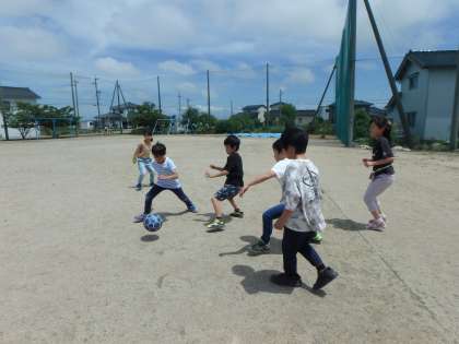 スポーツ係はサッカー集会を開いてくれ、全員でサッカーをしました。