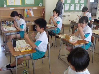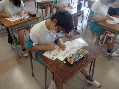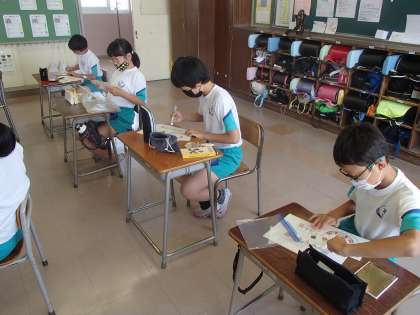 歯や口の健康について保健指導をしました。むし歯だけでなく歯肉炎や歯周病を予防することも意識してほしいと思い、感染症対策をしながら、自分の歯肉を観察しました。また、一斉にカラーテストを行うことが難しいため、歯のイラストを用いて歯みがきの仕方を確認しました。
