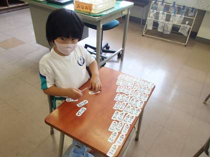 算数は、計算カードを使って、10までのたし算のきまりを見付けました。