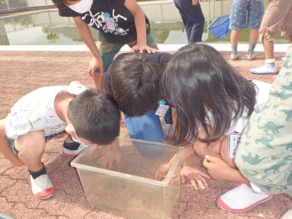 子供たちは口々に「すくっているのに気づいて、真ん中の方に逃げたんじゃないかな」「深いところにいるんじゃないかな」と予想していました。