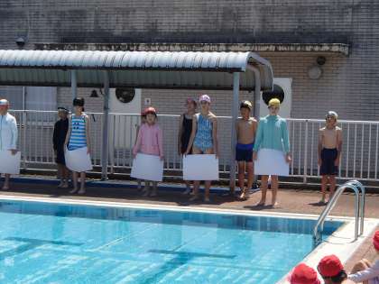 今日のなかよしタイムから3限にかけて、プール開きが行われました。環境・スポーツ委員会のみんなで、プール学習の目当てや注意点等について、はきはきと説明することができました。
