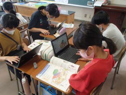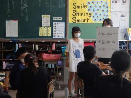 家庭科「夏をすずしくさわやかに」では、自分たちが衣食住でしている工夫を班ごとに話し合い、その後、教科書の図を見ながら夏の特徴を生かせる工夫を見つけました。子供たちは、「ぼく、氷枕する」「あ、私もたまにする」「冷やし中華も夏になったらよく食べる」「髪の毛を切ったり、しばったりすると涼しい」「プールや海に入るとすずしくなる」と自分たちが今までしてきた夏をすずしく過ごすための工夫をたくさん見つけていました。他の班の発表を聞いたり、教科書の図を見て気付いたことから「なるべく薄い生地の服を着て、帽子をかぶって出かけるようにしたい」「エアコンをうまく利用し、熱中症にならないようにしたい」などと振り返っていました。梅雨が明けると、暑さが増します。自分にできる工夫をし、楽しく夏を過ごしてほしいです。