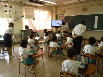 各学校にICT支援員が派遣されました。クロムブックを使った授業支援や教員の校内研修を行います。今日は、1年生が学校評価をクロムブックを使って入力しするのを手伝ってもらいました。今後も定期訪問されます。回数は多くありませんが、私たち教員も積極的に質問・相談し、授業力を高めたいと思います。