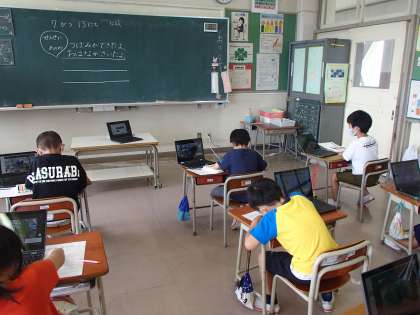 生活科では、ずっと雨が続いてできなかった、あさがおの観察をしました。つぼみになったり花が咲いたりした様子を、クロムブックで写真を撮り、ワークシートにかきました。