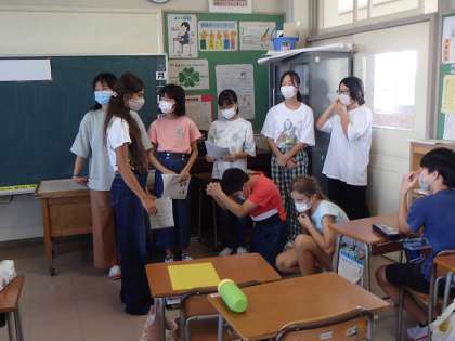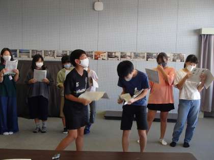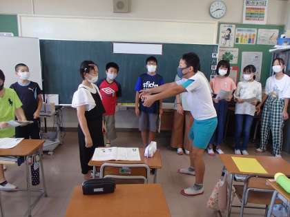 初めて、学習発表会の劇練習を行いました。子供たちは、劇練習をとっても楽しみにしていました。今日は、場面ごとに分かれ、台本を読み合わせたり、身振り、手振りを考えたりしました。子供たちの日常生活が入っていたり、よく知っている時代のことだったりするので、台詞の言い方がとても上手なのです。やる気満々な子供たち。25人で笑いいっぱいの演技をしている方も見ている人も元気になるような劇を創りあげていきたいと思います。