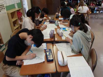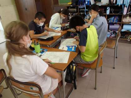 総合的な学習の時間では、「ぼうさい探検隊マップ作り」に取り組んでいます。グーグルアースを使い、自分たちが住んでいる地域の危険な場所や安全な場所を話し合って確認しました。今日は、実際に行くための計画を立てました。子供たちは、限られた時間内にルートを回れるように地図を見ながらコースを決めていました。「ここから行くと地区全体を回ってこられるよ」「ここが先の方がいいんじゃない?」などと地図を見ながら話している様子に感心してしまいました。学校のみんなに役に立つぼうさいマップに仕上がったらいいなと思っています。