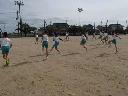 富山県総合運動公園でのチャレンジ陸上記録会は中止になりましたが、各学校では記録会を行うので、今日から陸上練習を始めました。テーマは「最高の自分にチャレンジ」で、種目は、50m走、走り幅跳び、ソフトボール投げです。子供たちには、今までの自分の記録を超えることにチャレンジするよう声をかけました。「全部、金をとりたい」「50m走は、銅をとれるようにがんばりたい」など、それぞれが目標を決め、練習を始めました。初日だったこともあり、「足が上がらない」「久しぶりに走って感覚がつかめない」と言っている子供もいました。これからです。最高の記録が出せるように、2週間がんばりたいと思います。