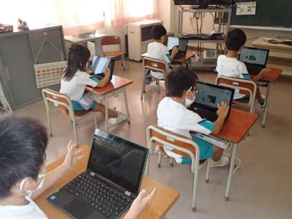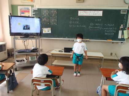 昨日の生活科は、夏休みにおうちでしたお手伝いの、まとめと発表会をしました。クロムブックを使って、端末上の自分のワークシートに写真を入れて、名前やタイトル、もようなどを自由にかきました。その後は、出来上がったワークシートをみんなにも見てもらいながら、お手伝いの感想などを紹介しました。