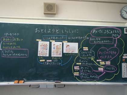 今日の道徳では、人には相手が喜ぶことをしたいと願う心があることがわかりました。敬老の日の話題を出すと、はじめは、プレゼントをすることが「ありがとう」の気持ちなのだと言っていた子供たちでした。ですが、話し合い後の振り返りノートでは、「おじいちゃんに釣りを教えてもらいたい」「おばあちゃんと一緒にシチューを作りたい」など、相手の気持ちを考えていてすてきだな、と思いました。