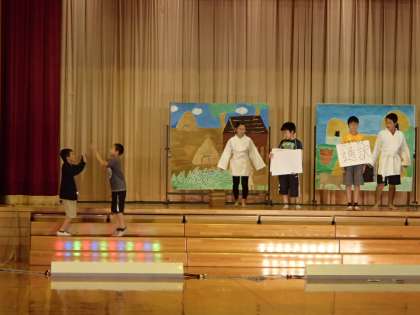 子供たちは、学習発表会で行う創作劇「タピオカ・ツンドラ」の練習が楽しいようで、劇の練習になると大喜び。今日は、衣装をつけ、マスクをとり、本番のように最初から最後まで通してみました。もちろん、声の大きさや動き等、まだまだ課題はあるのですが、私は、生き生きと楽しそうに演じている子供たちの姿が一番うれしいのです。それを見ていると、今年は、学習発表会を行うことができて本当によかったなあと心から思います。学習発表会後、「やり遂げることができた」という最高の気持ちが味わえるように、支援をしていきたいと思います。