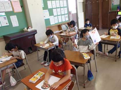 1年生 図画工作科 ぺたぺた ポンポン たのしいな