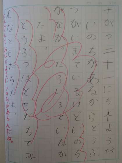 今日の道徳は、動物にも自分と同じ命があることや似ていることがあることについて、考え話し合いました。資料文「うちの ねこ」を読み、親しみをもって、動物を大切にしていこうする心について、話し合いました。