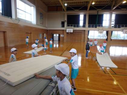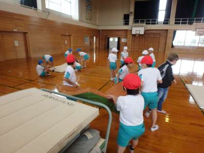 昨日の体育で、マットの運び方、並べ方を伝えたところ、今日の体育では、担任の指示なしで全て自分たちで準備をすることができました。