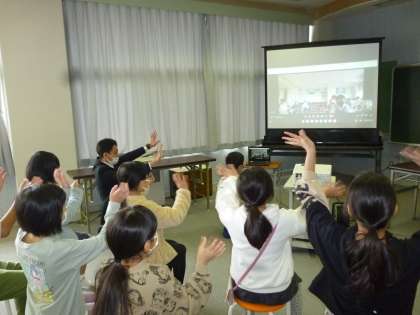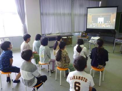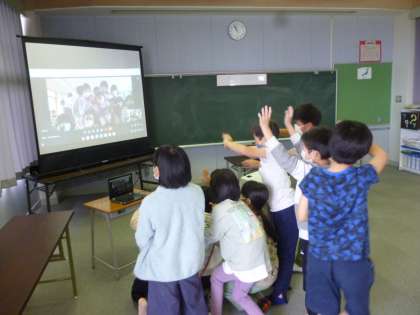今日は、老田小学校の4年生とMeetを使ってリモート交流を行いました。今回は主に老田小学校の4年生が学習発表会で行った老田地区調べの発表を見ました。初めて顔を合わせる友達と仲良くなれて、嬉しそうな表情の4年生でした。来週は、寒江小学校が行った発表を見てもらいます。