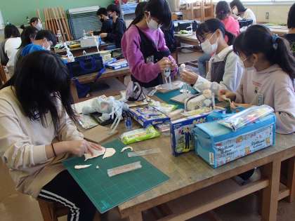 図画工作科では「未来のわたし」の学習に入りました。この学習は、自分の10年後、20年後の姿を想像し、未来のある日の姿をつくります。子供たちは「看護師になって患者さんのお世話をしている様子をつくろう」「美容師になって髪をアレンジしている様子をつくろう」などと自分の未来を想像し、楽しく製作していました。子供たちの未来は無限です。すばらしいですね。