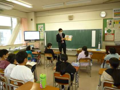 学校でも読書月間が始まっていることもあり、4年生教室では、読書タイムにおすすめの本の読み聞かせを行っています。これを機にいろいろな本に親しんでほしいです。