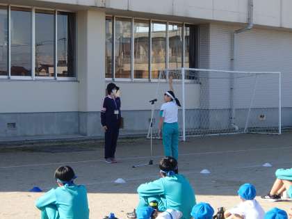 たすきリレー集会では、子供たちの素敵がたくさんありました。1年生にたすきをかけ、スタート位置に連れていったり、「ペース配分考えてね」と声をかけたり、「速かったね。がんばったね」とゴールに入った下級生を迎えたりしている6年生が多くいました。また、6年生自身も全力を出して精一杯走っていました。その真剣さがものすごく格好よかったです。そんな子供たちのがんばる姿に感動しました。きっと、下級生の目にも、必死で最後まで走り抜く6年生の姿が残ったのではないでしょうか。すばらしい最高学年の姿でした。