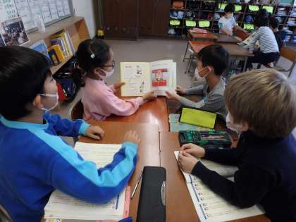 国語科の学習で、1年生に読み聞かせをする本を話合いで決定するという学習をしました。