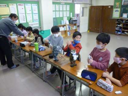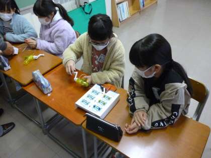 リサイクルに関するビデオを見たり、手回し発電機で電気を作っておもちゃを動かしたりと、楽しく環境について学ぶことができました。