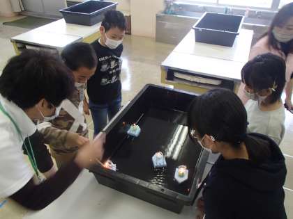 今日の活動を通して、科学のおもしろさを感じることができたのではないかと思います。なぜ、この船は動いたのか、その原理を考えてみてほしいと思います。また、今回製作した蒸気船は家庭に持ち帰っていますので、安全には十分気を付けて家庭でも楽しんでもらえればと思います。