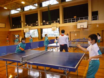 子供たちが楽しみにしているクラブ活動。体育館では、バスケットボール、卓球を楽しんでいました。