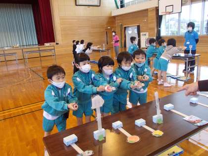 昨日は「サイエンスカー」の訪問がありました。外部から講師の先生をお招きして、科学の不思議や面白さについて、教えていただきました。低学年は、空気あそびをしました。空のペットボトルで、マイ空気砲をつくり、発泡スチロールの玉で、遠くまで飛ばす競争をしたり、チーム対抗まと当てゲームをしたりしました。空気の不思議な力を感じながら、楽しく活動しました。