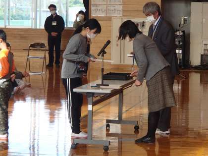 また、集会の後には受賞紹介がありました。そこでも、5年生のTさんが夏休み中に取り組んだ応募作品の一つである防火ポスターの作品について表彰されました。