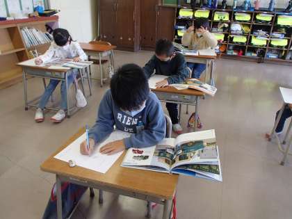 上 国語科「オリジナルじどう車ずかん」作成中。