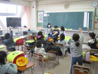帰りの会で子供たちがクイズに答えている様子です。おもしろいクイズを見つけてくるのでどんな問題を出すのか毎回ワクワクしています。今度はどんなクイズを出すのかな?楽しみです。