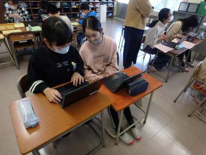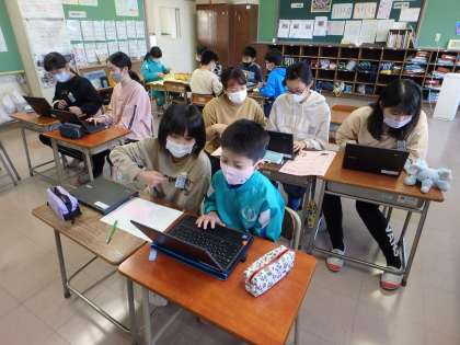 先週の委員会活動で、寒江っ子に聞いてみたい「給食に関するアンケート」を考え、クロムブックを使いお知らせやアンケートフォームを作成しました!