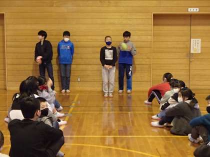 昨日、スポーツ係が考えたスポーツ集会を行いました。目当ては、「全員が楽しめるようにすること」でした。なかなか積極的にボールを取りにいけない友達に「投げていいよ」と渡したり、距離が近い女子にボールを当てる時は、優しく当てたり、「男子は少し手加減してね」とスポーツ係が言ったりするなど、温かい場面がたくさん見られました。だから、全員にこにこ笑顔でした。