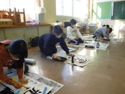 4年生は、書き初め大会に向けて「光る立山」を練習しています。お手本をしっかりと見て、文字同士の大きさやバランス、筆の使い方などを意識しながら一生懸命取り組んでいます。