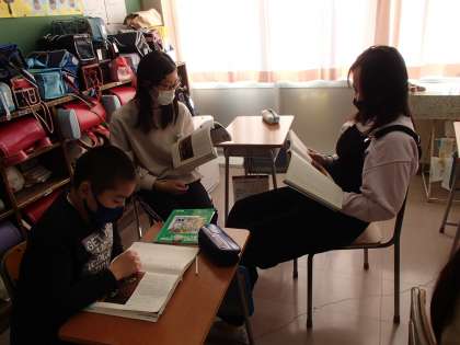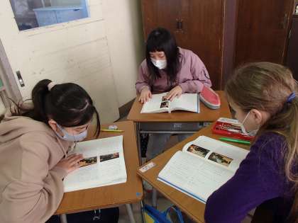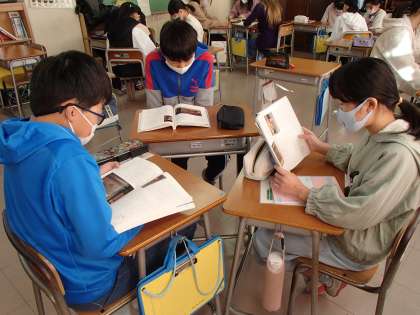 国語科「柿山伏」の学習では、柿主と山伏のかけ合いを楽しみながら、音読に取り組んでいます。初めて狂言を聞いた時は、「意味分からない」「どこ読んでいるの?」と言っていた子供たちだったのですが、少しずつ話の内容が分かってくると難しい言い回しもすらすら読めるようになってきました。また、台詞にあった読み方をする子供も出てきて、すごいなと感心しました。もう少し練習を重ね、お互いに音読を聞き合う予定でいます。