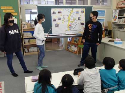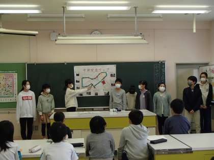 地区別児童会で総合的な学習の時間に取り組んだ「地域の安全〜今、わたしたちにできること〜」の発表を地区ごとに行いました。地区別児童会での発表のために、地区ごとに発表を聞き合い、お互いのよいところを伝え合ったり、アドバイスし合ったりしてきました。子供たちは、伝える相手の立場に立って、分かりやすく話すことや自分の経験などを交えて話すことなどを工夫して練習を重ねてきました。今日は、しっかり発表できたようで、「ちゃんと伝えられてよかった」「今日伝えたことをもとに安全に気をつけてほしい」などと振り返っていました。子供たちのつくった安全マップは児童玄関に掲示する予定です。