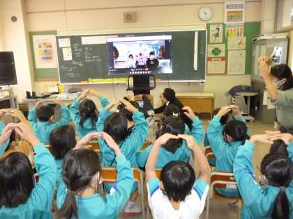 古沢小学校の2年生とリモート交流を行いました。古沢小の子供たちはダンスとおもちゃづくりのプレゼンをしてくれました。寒江小の子供たちは体育で練習したダンスと図工で行ったファッションショーを見せました。リモートで交流する楽しさを知った2年生でした。