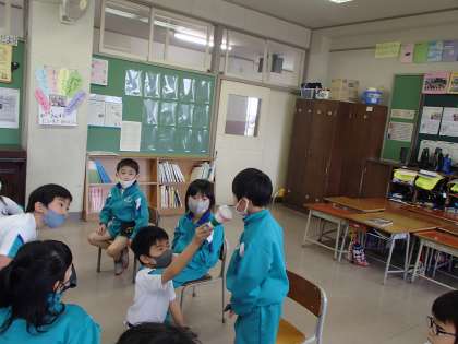 今日は、集会・イベント係が中心となって、「2学き がんばったね!しゅうかい」を開きました。4つのチームがそれぞれ、発表を考え準備をしました。集会では、はんかち落とし、じゃんけん大会、いすとりゲーム、宝さがしをしました。どのチームも思考をこらし、楽しい内容を考えていました。また、みんなで歌を歌ったり、インタビューコーナーで感想を伝え合ったりしました。宝さがしでは、難易度が高く、見つからないお宝もありました。みんな楽しそうでした。