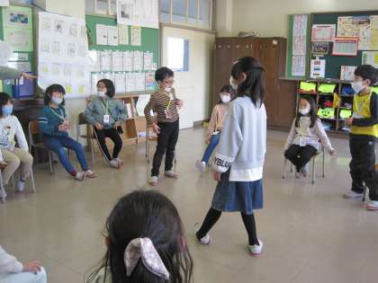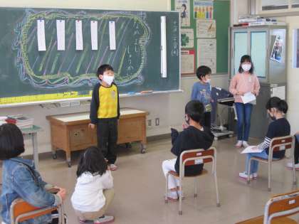 今日はなかよし集会を行いました。係ごとに役割を決めて活動しましたが、どの係も楽しい活動を考えてくれました。ワークショップの経験を生かし、司会やインタビュー、ルール説明などもとっても上手に出来ました。いろいろな経験が子供たちの成長につながっていると実感した集会でした。