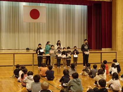 受賞式では、ダディーズのみなさんからのあいさつ運動の表彰がありました。6年生は、2名選ばれました。最高学年として立派なあいさつを続けて、そして広めてほしいなと思います。