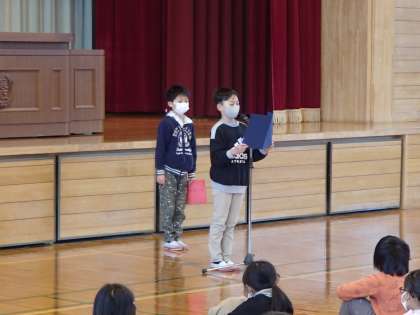今日は2学期終業式でした。終業式では、5年生を代表して一人の児童が2学期の学びを発表しました。努力をしていたからこそ、結果が出ていたということに気が付いたようで、3学期も努力を続けることを忘れないようにしたいという内容でした。とてもよい気付きだと思います。