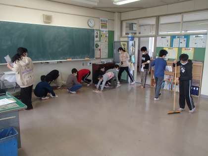 最後の清掃では、学級全員で教室を中心に掃除しました。全員がてきぱきと動き、素早く、そして丁寧に掃除をしていました。
